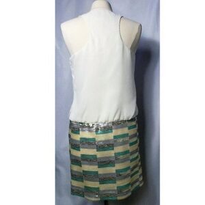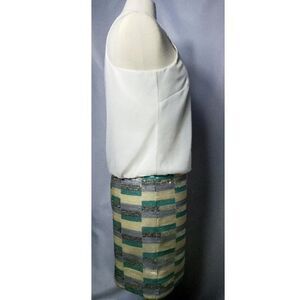 Laundry by Shelli Segal Women Elegant Sleeveless Racerback Shift Drop Waist Dress with Beautiful Sequin Skirt. Size 8 Hidden Side Zipper. ♥ Measurement w/ Mat’l Flat