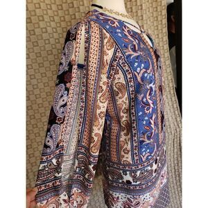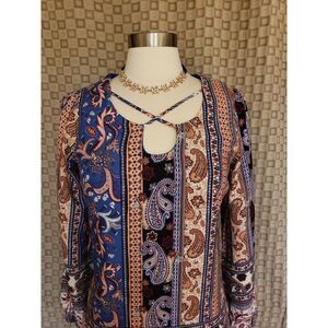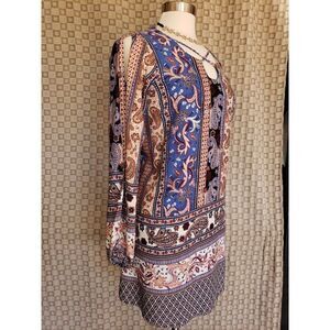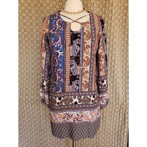 Women's Dress Chic Long Sleeve Vibrant Paisley Tunic Dress Small