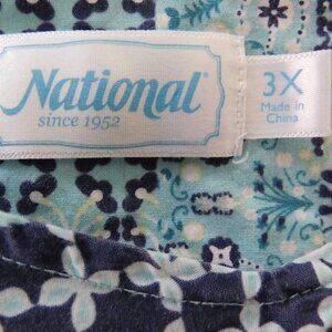 Womens Dress Cotton Muumuu Patio Floral Green Blue Pockets Size 3X