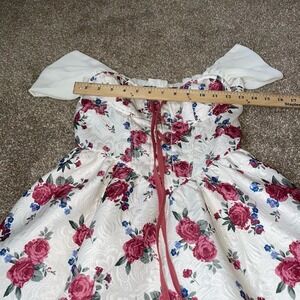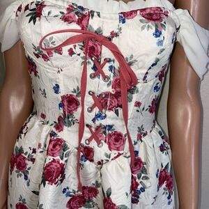 Women's Dress Floral Print Off Shoulder Lace Up Front peasant corset top SZ S