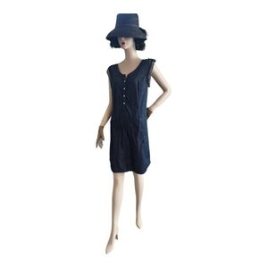 Women’s Dress GAP Denim Shift Dress Blue Front Pockets Roll Tab Shoulder Dress