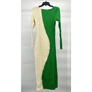 Women's Dress - Iggy Textured Bodycon Dress Green And White Long Sleave Size M