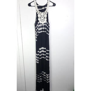 Womens Dress L Crochet Embroidered Tie Dye Striping Split Hem Resort Vacation