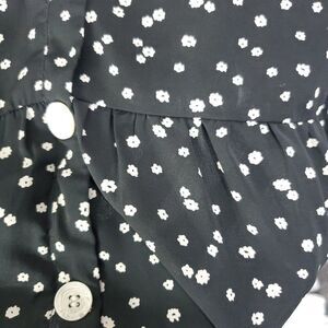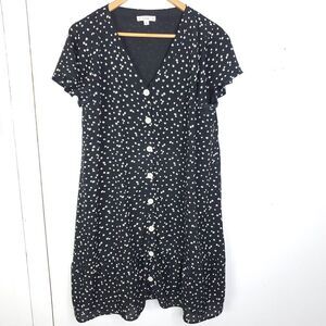 This black short sleeve shift dress by L Love is a versatile piece suitable for various occasions such as parties, workwear, or everyday wear. The dress features a V-neckline, button closure, and floral pattern, giving it a classic and feminine look. Made of lightweight polyester material, this dress is easy to care for as it is machine washable. Perfect for the warmer seasons of summer and spring, this lined dress in size L also includes accent buttons for added style.