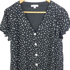 Womens Dress L Shift Polka Dot Fake Button Front Short Sleeve Flutter Hem