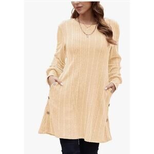 Women's Dress Long Sleeve Tunic, Crew Neck, with Pockets, Button Side SIZE L