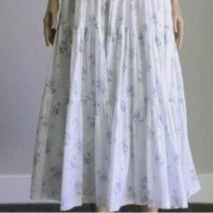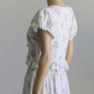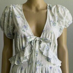 This Women's Dress by LoveShackFancy features a floral pattern in white with green and blue flowers, short sleeves, a V-neckline, and side zip closure. Made of cotton, this long sundress is perfect for parties, cocktails, or casual occasions. The dress also includes pockets, making it both stylish and practical for everyday wear. In size 4, this regular fit dress is designed for women looking for a fashionable and comfortable option.