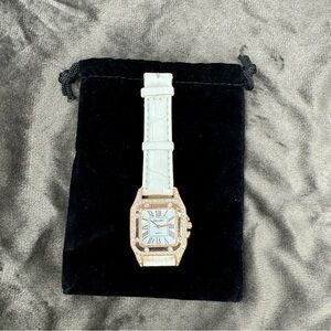Women’s Dress Quartz ROSE GOLD White Leather Band Light Weight Costume Watch