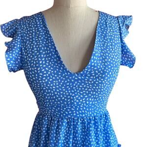 Womens Dress Size Small Blue Ruffles Summer Girly Cottage Garden Party Vacation
