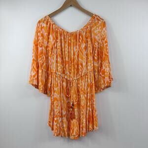 Women’s Dress Size Small Orange Resort Beach Vacation Cover Up Ruffles Print