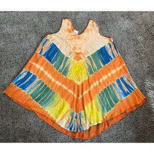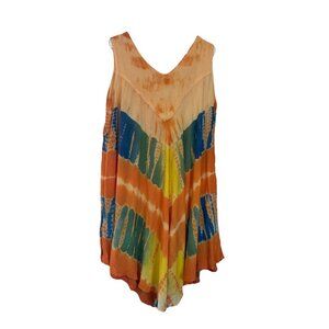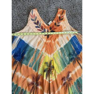 Womens Dress Tie Dye Embroidered Cover Up Tropical Palm Trees Beach FREE SIZE