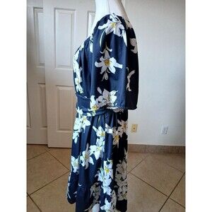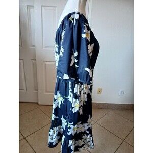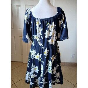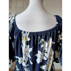 Womens Dress XL Off Shoulder Navy Blue Floral White Lily Print Boho Casual