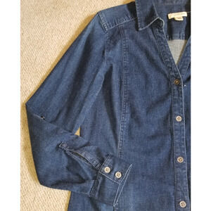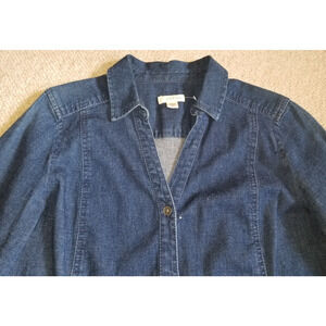 Womens Dress-J. JILL-DENIM-blue stretch denim chambray button-down shirt ls-PXS