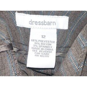 Elegant Womens Dressbarn Career Dress Pants in a fetching Olive green color highlighted with Teal colored pin stripes. The size 12 pants offer a comfy stretch and handy pockets for everyday convenience.
