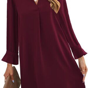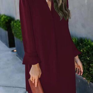 Features: Knee length dress, V-neck, ruffle sleeves, shift dress, solid color, simple and plain,soft and attractive.Can be used as maternity dress