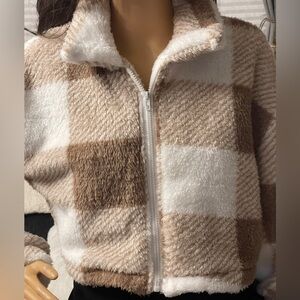 Brand New..New Style, Cozy, Soft and Warm Drop Shoulder Long Sleeve Collar Crop Plush Coat, Plaid Print Zipper Thickened Warm, Casual, Fitted, machine wash in Cold, Polyester 100%, Woven, smoke and pet free home, fast shipping