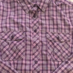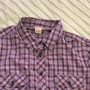 Women’s Duluth Trading Co Purple and White Striped Button Down Shirt. Size S