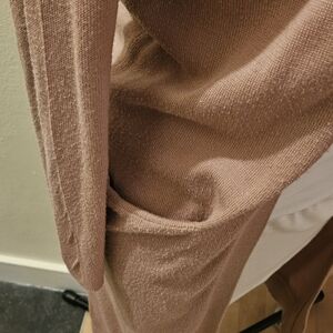Stay cozy and stylish with this elegant tan sweater cardigan. Perfect for layering, this piece adds a layer of warmth and has a flattering fit.