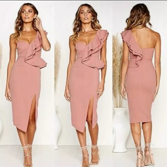 This stunning black cocktail dress from ECOWISH is the perfect addition to any party wardrobe. The dress features a flattering one-shoulder neckline and is made from a comfortable blend of polyester and spandex. The knee-length bodycon style is both sexy and versatile, making it perfect for a wedding or a night out on the town.