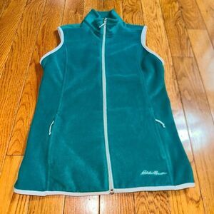 Women's EDDIE BAUER green Fleece Vest warm vest has zip pockets size XS