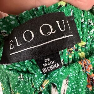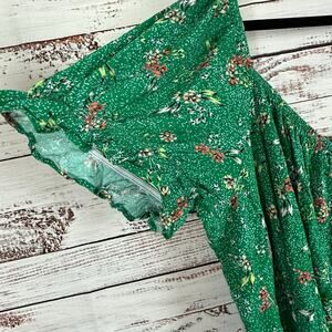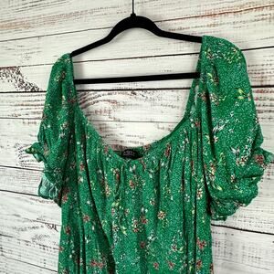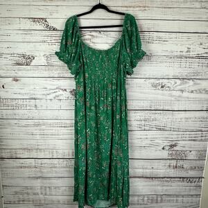 Womens ELOQUII Green Floral Flowy Smocked Scoop Neck Short Sleeve Maxi Dress 28