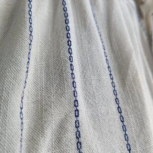 Beautiful blue chain pinstriping with a cinched waist and belted bow