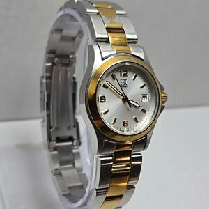 Womens ESQ by Movado E5294 28mm Gold Silver Tone Date Watch New Battery Dainty