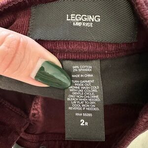 Nice pair of burgundy/wine colored corduroy leggings/pants in a size 2R.