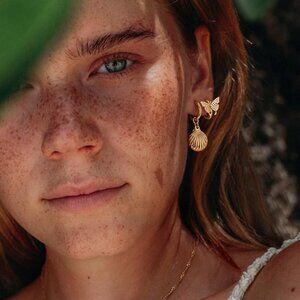 Women's Earrings Gold Huggie Hoop Dangle Drop 14K Gold Plated Small Simple