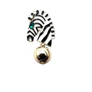 Elegant and eye-catching, these pierced earrings feature a striking zebra pattern in black and white enamel. Accented with green rhinestones, they add a pop of color to any outfit, perfect for any occasion.