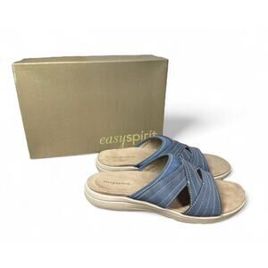 Women's Easy Spirit Setara Leather Slide Sandals Comfort Denim Blue 7.5 W