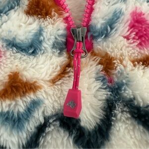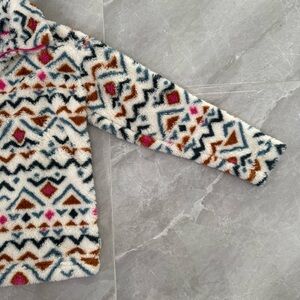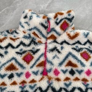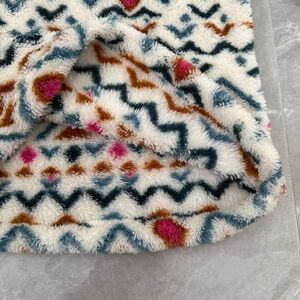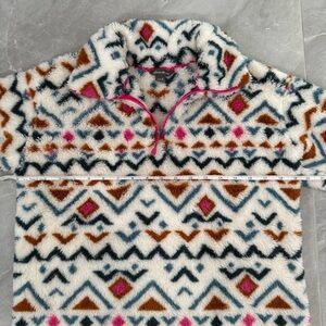 Good condition - Women’s Eddie Bauer Aztec Ultra Soft Plush 1/4 Zip Pullover Sweater. Has 1/4 zipper closure. Colors: white, pink, blue, and orange. Size: S.
