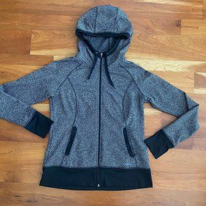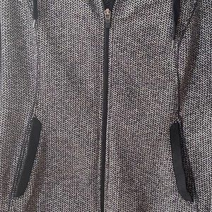 Womens Eddie Bauer Tech Jacket Hoodie Black Gray Houndstooth Pattern,
