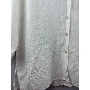 Women’s Edward XL Irish Linen Shell Button Up White Floral Embroidery 3 Quarter