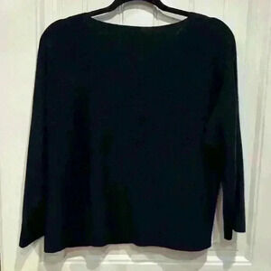 Women’s Eileen Fisher Black Blouse Top Shoulder Slits/Cutout 100%Merino Wool XS