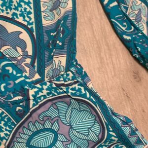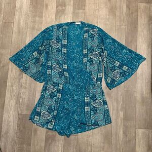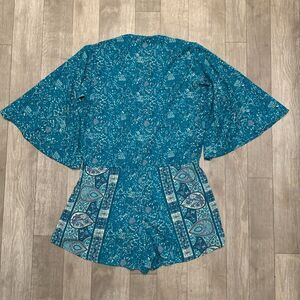 Womens Elan Paisley V-Neck Kimonos Sleeve Faux Wrap Romper