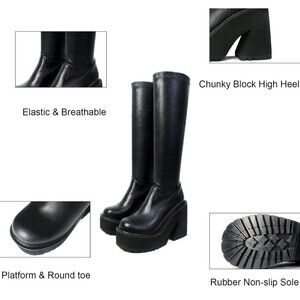 Womens Elastic Knee High Platform Chunky Block High Heel Sock Boots Sz 6.5