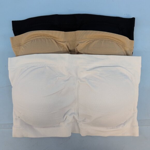 Womens Elastic Waist Strapless Stretch Bandeau Bra 5XL White Black Tan Pack Of 3