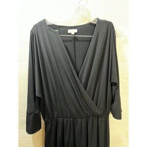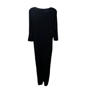 Women's Elasticated Waist Long Sleeve Wrap Jumpsuit Black Medium