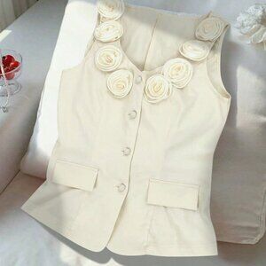 Women's Elegant 3d Floral Decor Front Button down Sexy Top