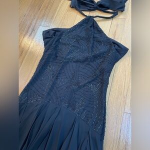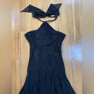Women’s Elegant BCBGMaxAzria Beaded Black Halter Dress
