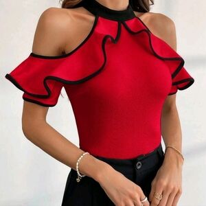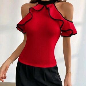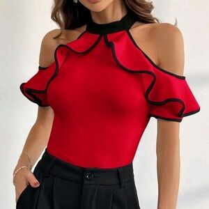 Women's Elegant Commuter Color-Block Ruffle Ruffle Short Sleeve T-Shirt