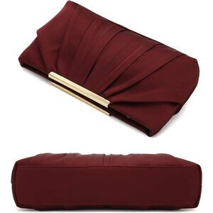 ⚡ Women's Elegant Evening Pleated Satin Simple Classy Dark Red Clutch Bag
