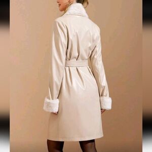 Women's Elegant Faux Fur Collar PU Patchwork Cinched Waist High-End Apricot Coat