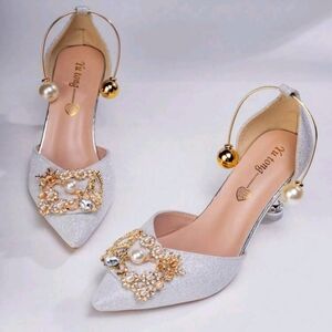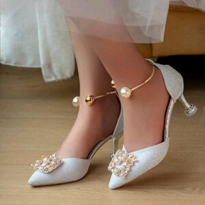 Women's Elegant Faux Pearl Accent Rhinestone High Heel Pumps, Stylish Bridal Dre