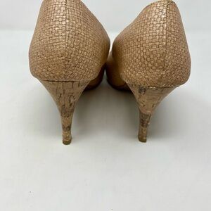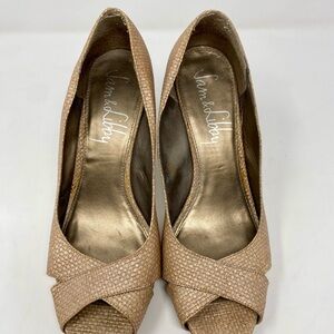 Elevate your style with these Sam & Libby tan heels, featuring a sophisticated textured design. The medium-high heel and peep-toe style make them perfect for formal occasions. Their neutral color ensures versatility, pairing effortlessly with various outfits.