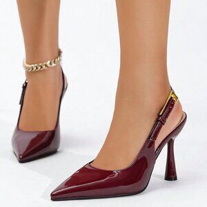 Women's Elegant Pointed Toe High Heel Leather Slingback Shoes With Decor Buckle