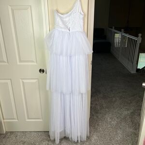 Women’s Elegant Sequins Ball Room Maxi Prom Party Mesh Dress White Size XS