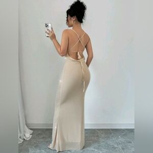 Women's Elegant Sexy Sheer Party Gown With Rhinestones, Plunging Neckline