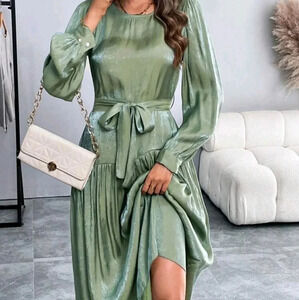 Women's Elegant Solid Color Puff Sleeve Maxi Dress, Spring Autumn